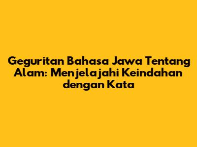 Halo guys! Siapa di sini yang suka banget sama keindahan alam? Pasti banyak, kan? Nah, kali ini kita bakal menyelami keindahan alam lewat geguritan bahasa Jawa. Geguritan itu semacam puisi, tapi khas banget dengan budaya Jawa yang kaya. Jadi, siap-siap ya, kita bakal terpesona dengan kata-kata indah yang menggambarkan alam sekitar kita.