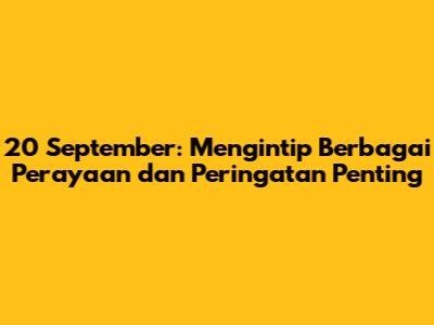 Hai guys! Kalian penasaran gak sih, tanggal 20 September itu ada perayaan atau peringatan penting apa aja? Nah, artikel ini bakal ngajak kalian buat jalan-jalan virtual, menyusuri berbagai peristiwa seru dan bermakna yang terjadi di tanggal tersebut. Jadi, siap-siap buat catat tanggal penting ini di kalender kalian, ya! Kita akan membahas mulai dari hari-hari besar internasional, peristiwa bersejarah, hingga momen-momen spesial yang patut kita kenang. Yuk, langsung aja kita mulai petualangan seru ini!