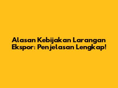 Alasan Kebijakan Larangan Ekspor: Penjelasan Lengkap!