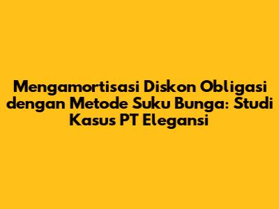 Hey guys! Pernah denger istilah amortisasi diskon obligasi? Atau malah baru pertama kali ini? Tenang, santai aja! Di artikel ini, kita bakal bahas tuntas tentang amortisasi diskon obligasi, khususnya dengan menggunakan metode suku bunga. Biar makin asik, kita juga bakal lihat studi kasus nyata dari PT Elegansi. Jadi, siapin kopi atau teh kamu, dan mari kita mulai!