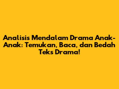 Analisis Drama Anak: Panduan Lengkap Untuk Orang Tua & Pendidik
