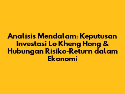 Hai guys! Kali ini, kita akan bedah tuntas dua pertanyaan seru yang seringkali muncul dalam dunia investasi. Kita akan mulai dengan menganalisis keputusan investasi seorang legenda investasi Indonesia, Lo Kheng Hong. Kemudian, kita akan menyelami hubungan krusial antara risiko dan tingkat pengembalian (return) dalam investasi. Siap-siap, karena kita akan membahasnya secara mendalam dan mudah dipahami!
