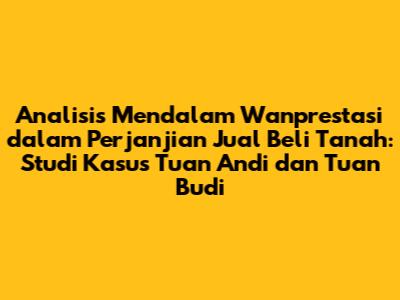 Selamat datang, guys! Mari kita bedah tuntas kasus wanprestasi alias ingkar janji dalam perjanjian jual beli tanah antara Tuan Andi dan Tuan Budi. Kasus ini bukan cuma soal hukum, tapi juga tentang bagaimana kita semua bisa lebih paham hak dan kewajiban saat bertransaksi properti. Kita akan kupas tuntas mulai dari fakta-fakta, analisis hukum, hingga solusi yang bisa diambil. Jadi, siap-siap ya, karena kita akan menyelami dunia hukum yang seru ini!