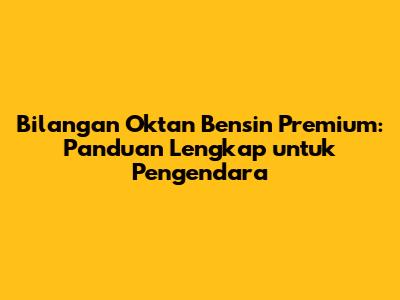 Guys, bilangan oktan adalah faktor penting yang perlu kamu perhatikan saat memilih bensin. Untuk bensin premium, bilangan oktannya umumnya adalah 88. Pastikan untuk memilih jenis bensin yang sesuai dengan rekomendasi pabrikan kendaraanmu. Dengan begitu, kamu bisa memastikan mesin kendaraanmu bekerja dengan optimal, performa tetap terjaga, dan umur mesin lebih panjang. Jangan ragu untuk mencari informasi lebih lanjut dan selalu prioritaskan perawatan kendaraanmu ya!