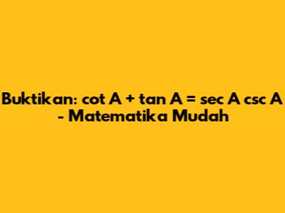 Buktikan: Cot A + Tan A = Sec A Csc A - Matematika Mudah