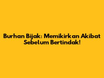 Burhan Bijak: Memikirkan Akibat Sebelum Bertindak!