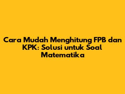 Selamat datang, teman-teman! Kali ini, kita akan membahas soal matematika yang sering muncul, yaitu tentang Faktor Persekutuan Terbesar (FPB) dan Kelipatan Persekutuan Terkecil (KPK). Jangan khawatir jika kalian merasa kesulitan, karena kita akan membahasnya dengan cara yang mudah dipahami. Kita akan mulai dengan soal yang diberikan, kemudian membahas konsep dasarnya, dan akhirnya memberikan tips untuk memecahkan soal serupa dengan cepat. Mari kita mulai!