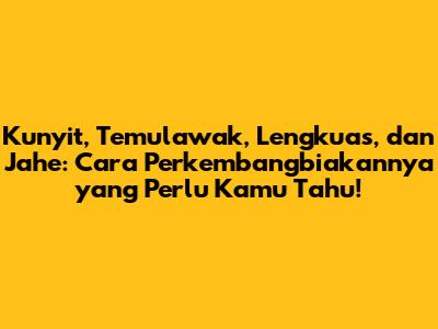 Kunyit, temulawak, lengkuas, dan jahe adalah tanaman rimpang yang sering kita jumpai di dapur atau sebagai bahan obat tradisional. Tapi, guys, pernah nggak sih kalian bertanya-tanya bagaimana sih cara tanaman-tanaman ini berkembang biak? Nah, daripada penasaran, yuk kita bahas tuntas cara perkembangbiakan kunyit, temulawak, lengkuas, dan jahe!