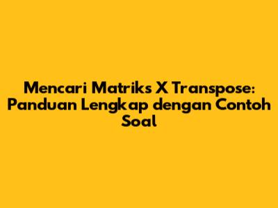 Matriks, guys, adalah salah satu konsep penting dalam matematika yang punya banyak aplikasi di berbagai bidang, mulai dari teknik, ekonomi, sampai ilmu komputer. Nah, salah satu operasi yang sering banget kita temui dalam dunia matriks adalah mencari transpose matriks, atau . Tapi, gimana kalau kita dihadapkan dengan soal yang lebih kompleks, misalnya mencari matriks X transpose () dari suatu persamaan matriks yang melibatkan operasi transpose lainnya? Jangan khawatir! Artikel ini akan membahas tuntas cara menyelesaikan soal seperti itu, lengkap dengan contoh soal dan pembahasannya. Yuk, simak!