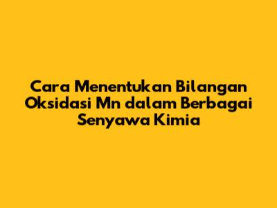 Cara Menentukan Bilangan Oksidasi Mn Dalam Berbagai Senyawa Kimia