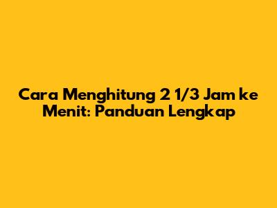 Cara Menghitung 2 1/3 Jam Ke Menit: Panduan Lengkap