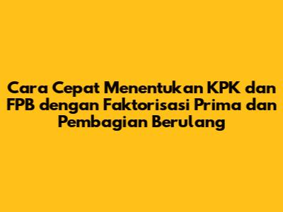 Hai guys! Pernah gak sih kalian dihadapkan pada soal matematika yang minta kalian mencari KPK atau FPB dari beberapa bilangan? Pasti sering banget, kan? Nah, di artikel ini, kita akan kupas tuntas cara jitu menentukan KPK (Kelipatan Persekutuan Terkecil) dan FPB (Faktor Persekutuan Terbesar) dari bilangan-bilangan, khususnya menggunakan dua metode andalan: faktorisasi prima dan pembagian berulang. Dijamin, setelah baca artikel ini, kalian bakal jagoan deh urusan KPK dan FPB! Yuk, langsung aja kita mulai!