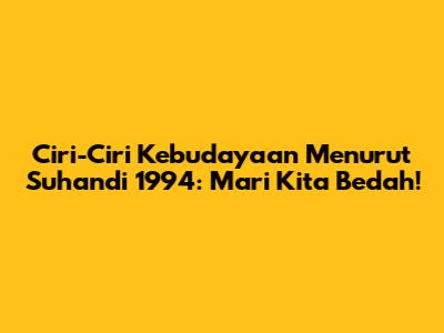 Halo guys! Kali ini kita akan membahas soal yang cukup menarik seputar kebudayaan, khususnya berdasarkan pandangan Suhandi pada tahun 1994. Pertanyaannya adalah, dari beberapa ciri-ciri kebudayaan yang ada, mana sih yang bukan merupakan ciri-ciri kebudayaan menurut beliau? Yuk, kita kupas tuntas!