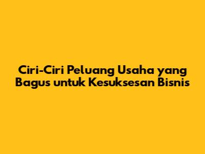 Ciri-Ciri Peluang Usaha Yang Bagus Untuk Kesuksesan Bisnis
