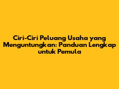 Ciri-Ciri Peluang Usaha Yang Menguntungkan: Panduan Lengkap Untuk Pemula