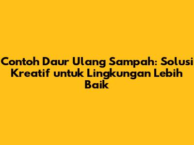 Contoh Daur Ulang Sampah: Solusi Kreatif Untuk Lingkungan Lebih Baik