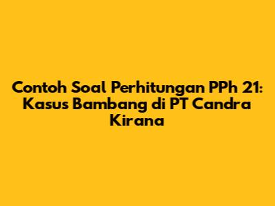 Guys, kali ini kita akan membahas contoh soal perhitungan PPh 21, khususnya kasus yang dialami oleh Bambang, seorang pegawai di PT Candra Kirana (PT CK). Kasus ini cukup menarik karena melibatkan berbagai komponen perhitungan PPh 21 yang penting. Buat kalian yang lagi belajar akuntansi atau lagi pusing ngitung PPh 21, yuk simak pembahasannya sampai selesai!