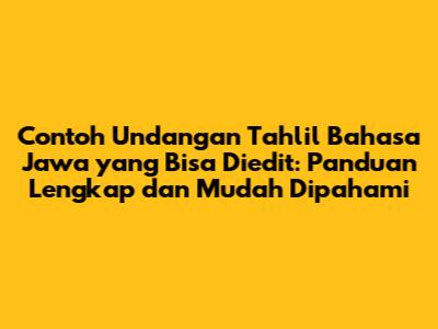 Guys, siapa nih yang lagi nyari contoh undangan tahlil pakai Bahasa Jawa yang gampang diedit? Pasti banyak ya di antara kita yang kadang bingung gimana cara nulis undangan tahlil yang sopan, khidmat, tapi juga tetap pakai bahasa daerah. Nah, kebetulan banget nih, kali ini kita bakal kupas tuntas soal contoh undangan tahlil bahasa Jawa yang bisa diedit. Tenang aja, artikel ini bakal ngebahasnya sampai sedetail mungkin, biar kamu nggak perlu pusing lagi nyari sana-sini. Kita bakal kasih beberapa opsi yang bisa langsung kamu pakai atau modifikasi sesuai kebutuhan. Jadi, siap-siap catat atau simpan artikel ini ya, biar kapanpun butuh, tinggal buka lagi!