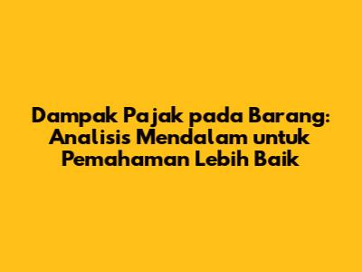 Dampak Pajak Pada Barang: Analisis Mendalam Untuk Pemahaman Lebih Baik