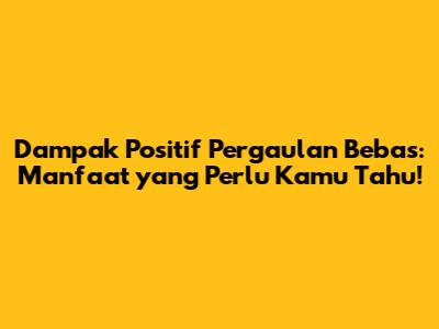 Banyak yang mengira pergaulan bebas itu cuma tentang hal-hal negatif, seperti seks bebas atau narkoba. Padahal, dampak positif pergaulan bebas itu banyak banget, lho! Asalkan kita bisa bergaul dengan bijak dan bertanggung jawab, ada banyak manfaat yang bisa kita dapatkan. Berikut ini beberapa manfaatnya: