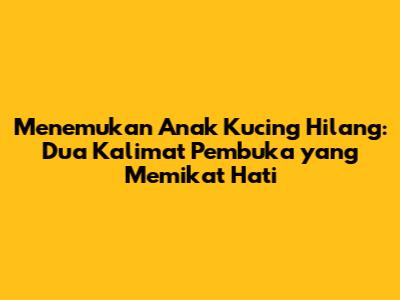Guys, pernah gak sih kalian ngebayangin lagi asyik-asyiknya di rumah, terus tiba-tiba nemuin anak kucing lucu yang kayaknya hilang di depan pintu? Pasti bingung, kan, mau ngapain? Nah, di artikel ini, kita bakal ngebahas gimana caranya bikin dua kalimat pembuka yang bisa langsung bikin pembaca tertarik sama cerita tentang nemuin anak kucing yang hilang. Penasaran? Yuk, langsung aja kita bahas!