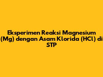 Eksperimen Seru: Reaksi Magnesium (Mg) Dengan Asam Klorida (HCl) Di STP