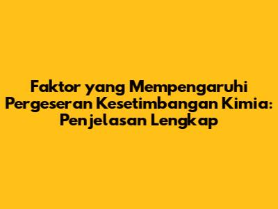 Faktor Yang Mempengaruhi Kesetimbangan Kimia: Apa Saja?