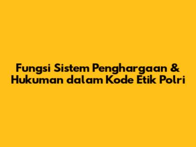 Fungsi Sistem Penghargaan & Hukuman Dalam Kode Etik Polri