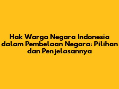 Hak Warga Negara: Pembelaan Negara Dalam Bidang Apa?