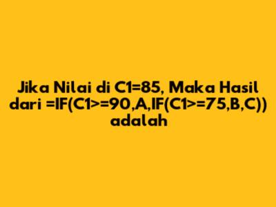 Oke guys, kali ini kita akan membahas soal logika pemrograman yang sering muncul dalam aplikasi spreadsheet seperti Microsoft Excel atau Google Sheets. Soalnya berbunyi: Jika nilai di C1 adalah 85, maka hasil dari rumus =IF(C1>=90,"A",IF(C1>=75,"B","C") adalah apa? Nah, biar gak bingung, mari kita bedah soal ini satu per satu.