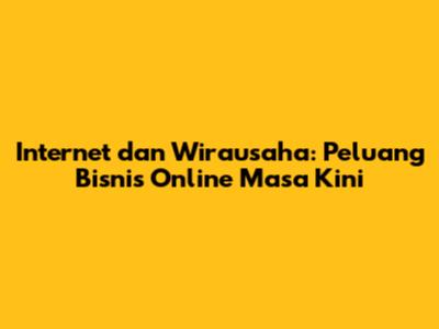 Internet & Wirausaha: Peluang Bisnis Online Masa Kini