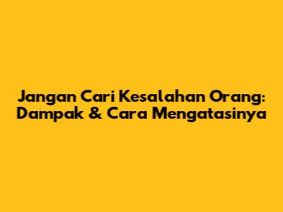 Jangan Cari Kesalahan Orang: Dampak & Cara Mengatasinya