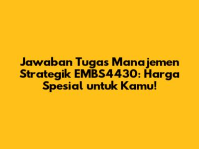Halo guys! Kali ini kita akan bedah tuntas soal tugas Manajemen Strategik EMBS4430, lengkap dengan jawaban yang mantap berdasarkan modul dan berbagai sumber referensi. Jangan khawatir soal harga, karena dijamin bersahabat banget! Kalau ada yang mau diskusi lebih lanjut atau butuh bantuan, langsung aja hubungi WA 082249358551. Yuk, kita mulai petualangan seru memahami strategi bisnis ini!