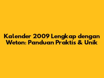 Kalender 2009 Lengkap Dengan Weton: Panduan Praktis & Unik