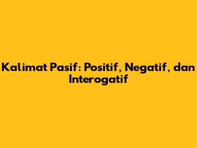 Kalimat Pasif: Positif, Negatif, Dan Interogatif