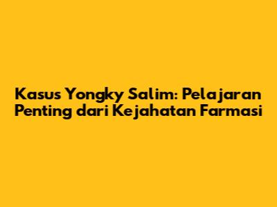 Kasus Yongky Salim: Pelajaran Dari Kejahatan Farmasi