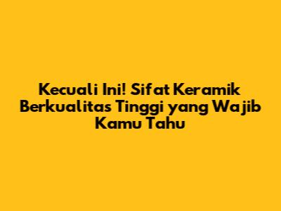Kecuali Ini! Sifat Keramik Berkualitas Tinggi Yang Wajib Kamu Tahu