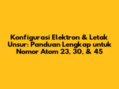 Konfigurasi elektron dan penentuan letak unsur dalam tabel periodik adalah dua konsep fundamental dalam kimia. Bagi kalian yang sedang belajar atau sekadar ingin tahu lebih dalam, mari kita bedah tuntas bagaimana cara menentukan konfigurasi elektron dan letak unsur untuk nomor atom 23, 30, dan 45. Dijamin, setelah membaca artikel ini, kalian akan semakin paham!