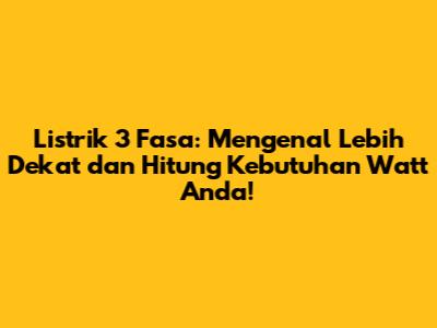 Guys, pernahkah kalian bertanya-tanya tentang perbedaan listrik di rumah dan di pabrik? Atau mungkin kalian bingung saat mendengar istilah listrik 3 fasa? Nah, artikel ini hadir untuk menjawab semua rasa penasaran kalian! Kita akan membahas tuntas tentang listrik 3 fasa, mulai dari pengertian, perbedaan dengan listrik 1 fasa, hingga cara menghitung kebutuhan daya listrik dalam satuan watt. Jadi, siapkan diri kalian untuk mendapatkan informasi yang lengkap dan mudah dipahami, ya!