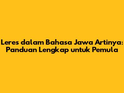Apa Arti Leres dalam Bahasa Jawa?