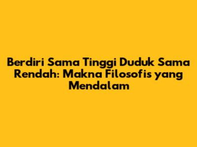 Makna Filosofi: Berdiri Sama Tinggi, Duduk Sama Rendah