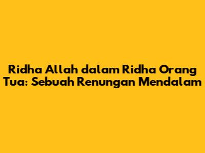 Makna Hadis: Ridha Allah Dan Restu Orang Tua