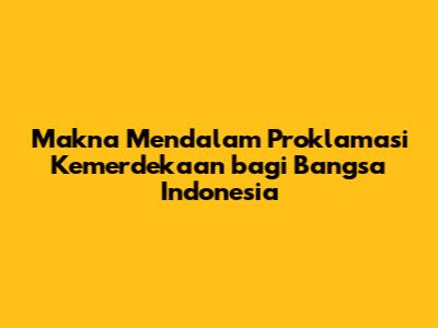 Guys, pasti kalian semua udah gak asing lagi kan sama yang namanya Proklamasi Kemerdekaan Indonesia? Yap, momen bersejarah yang terjadi pada tanggal 17 Agustus 1945. Tapi, sebenarnya apa sih makna proklamasi bagi kehidupan bangsa Indonesia? Yuk, kita kupas tuntas! Proklamasi bukan cuma sekadar pembacaan teks, tapi juga sebuah pernyataan yang sangat penting dan memiliki dampak besar bagi kita semua. Momen ini adalah titik awal dari perjalanan panjang bangsa Indonesia menuju kemerdekaan dan kedaulatan. Proklamasi adalah sebuah jawaban atas penderitaan dan perjuangan yang tak kenal lelah dari para pahlawan kita. Ini adalah bukti bahwa bangsa Indonesia berhak menentukan nasibnya sendiri, bebas dari belenggu penjajahan. Proklamasi bukan hanya sekadar perubahan status dari terjajah menjadi merdeka, tetapi juga perubahan mendasar dalam segala aspek kehidupan, mulai dari politik, ekonomi, sosial, hingga budaya. Dengan proklamasi, Indonesia memiliki dasar hukum untuk membangun negara yang berdaulat, adil, dan makmur. Proklamasi juga memberikan semangat baru bagi seluruh rakyat Indonesia untuk bersatu, berjuang, dan membangun masa depan yang lebih baik. Gak kebayang kan, kalau kita masih dijajah sampai sekarang? Makanya, kita harus benar-benar menghargai dan memahami makna proklamasi ini. Kita harus terus mengenang jasa para pahlawan yang telah berjuang demi kemerdekaan kita. Kita juga harus terus menjaga dan mempertahankan kemerdekaan yang telah kita raih. Mari kita lihat lebih dalam lagi apa saja makna penting dari proklamasi bagi bangsa Indonesia, sehingga kita bisa lebih menghargai perjuangan para pahlawan dan terus berkontribusi untuk kemajuan negara. Memahami makna proklamasi adalah kunci untuk membangun rasa cinta tanah air yang kuat dan semangat nasionalisme yang membara. Ini adalah fondasi yang kokoh untuk membangun bangsa yang kuat, berdaulat, dan bermartabat di mata dunia. Jadi, jangan pernah lupakan makna proklamasi bagi kehidupan bangsa Indonesia ya, guys!