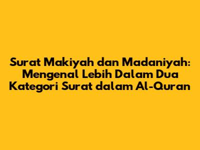 Guys, pernahkah kalian bertanya-tanya tentang perbedaan antara surat-surat dalam Al-Qur'an? Nah, artikel ini akan membahas tuntas tentang surat Makiyah dan Madaniyah. Kita akan menyelami definisi, ciri-ciri, perbedaan, keutamaan, serta contoh-contohnya. Dijamin, setelah membaca artikel ini, pemahaman kalian tentang Al-Qur'an akan semakin mendalam!