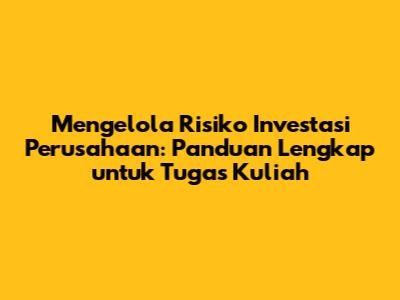 Hai, teman-teman! Kali ini kita akan membahas tuntas tentang cara mengelola risiko dalam investasi perusahaan. Pasti kalian sering dengar kan istilah investasi? Nah, investasi itu ibarat menanam benih. Harapannya, benih itu tumbuh menjadi pohon yang besar dan menghasilkan buah yang banyak. Tapi, ada juga kemungkinan benih itu tidak tumbuh, bahkan mati. Itulah risiko. Jadi, mengelola risiko investasi itu sama pentingnya dengan memilih jenis benih yang tepat, memastikan tanahnya subur, dan merawatnya dengan baik. Mari kita bedah lebih dalam, supaya tugas kuliah kalian makin kece!