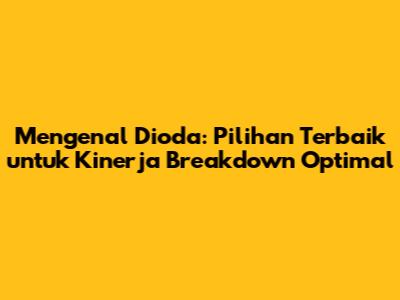 Guys, pernahkah kalian bertanya-tanya tentang komponen elektronik yang satu ini, dioda? Pasti sering dengar, kan? Nah, dioda ini punya peran penting dalam dunia elektronika, terutama dalam mengatur aliran listrik. Artikel ini bakal ngebahas tuntas tentang dioda, khususnya yang bekerja lebih baik di area breakdown. Kita akan kupas tuntas mulai dari pengertian, jenis-jenisnya, cara kerjanya, hingga aplikasinya dalam dunia nyata. Penasaran? Yuk, simak!