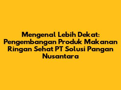 Hai guys! Kali ini kita akan membahas tentang pengembangan produk makanan ringan sehat yang sedang dikembangkan oleh PT Solusi Pangan Nusantara. Buat kalian yang suka ngemil tapi tetap pengen sehat, artikel ini pas banget buat kalian! Kita akan bedah mulai dari proses awal hingga tahap akhir pengembangan produk makanan ringan sehat ini. Penasaran kan?