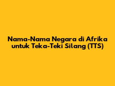 Hey guys! Siapa nih yang suka main teka-teki silang (TTS)? Pasti seru banget kan mengisi kotak-kotak kosong dengan jawaban yang tepat. Nah, kali ini kita bakal bahas tentang nama-nama negara di Afrika yang sering muncul di TTS. Benua Afrika itu luas banget, punya 54 negara dengan sejarah dan budaya yang kaya. Jadi, nggak heran kalau nama-nama negara di Afrika sering jadi bahan pertanyaan di TTS. Yuk, kita simak lebih lanjut!