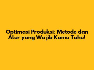 Bro, pernah gak sih lo ngerasa produksi di tempat kerja atau bisnis lo itu kayak jalan di tempat? Udah kerja keras, tapi hasilnya gitu-gitu aja. Nah, jangan khawatir, guys! Hari ini kita bakal ngobrolin soal optimasi produksi, sebuah strategi jitu buat naikin efisiensi dan produktivitas. Nggak cuma sekadar kerja lebih giat, tapi gimana caranya kerja lebih cerdas. Kita akan bedah tuntas mulai dari metode-metodenya sampai alur penerapannya. Siap-siap catat ya, karena ini bakal ngebantu banget buat perkembangan bisnis lo ke depannya. Optimasi produksi ini bukan cuma buat pabrik gede lho, tapi juga bisa banget diterapkan di skala UMKM, bahkan buat kerjaan individu.