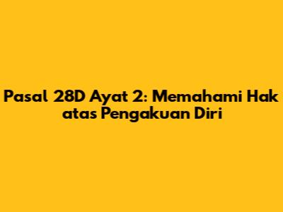 Halo guys! Pernah nggak sih kalian kepikiran soal hak-hak dasar yang kita punya sebagai warga negara? Nah, salah satu yang penting banget dan sering dibahas adalah hak atas pengakuan diri. Yuk, kita bedah lebih dalam soal Pasal 28D ayat 2 UUD 1945, yang ngomongin soal hak ini. Ini bukan cuma sekadar pasal di undang-undang, tapi pondasi penting buat memastikan setiap individu dihargai dan diakui keberadaannya. Kita bakal kupas tuntas kenapa pasal ini krusial, contoh penerapannya, dan gimana dampaknya buat kehidupan kita sehari-hari. Siap? Langsung aja kita mulai petualangan kita memahami hak yang satu ini!